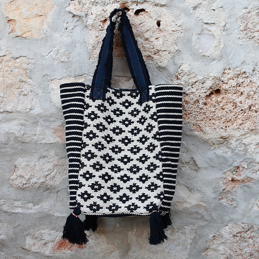 Elegantna torba pravokutnog kroja s kićankama. Osobine: